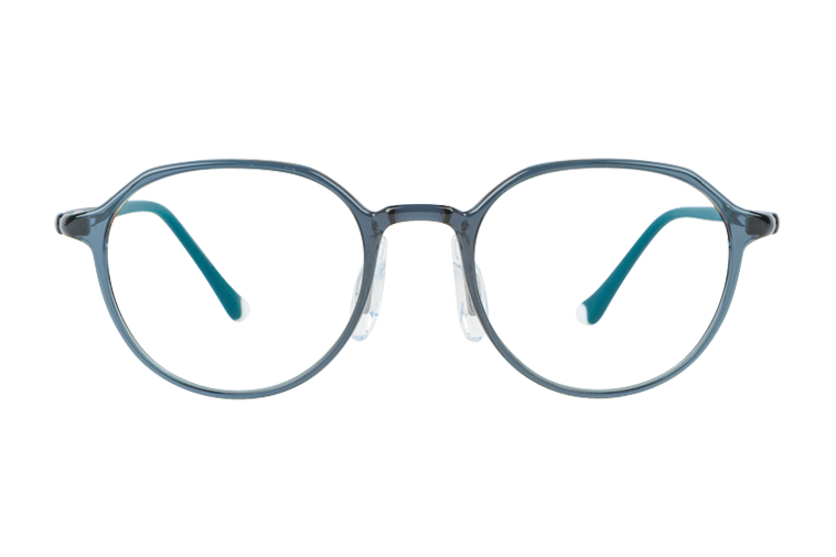 Ultra Light / Thick Silicone Nose Pad / Flexible / Safe for Kids / Hypo-Allergenic / Hyper Elastic Temple / Super Engineering Plastic / Durable Hinges / Two-Tone Color Temple Tips / High Gloss / Round Shape / Kids S (4Y-7Y)