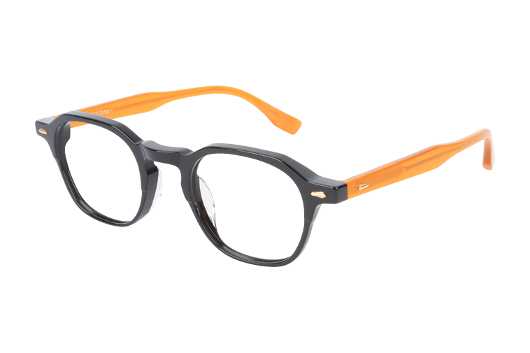 Hand-Polished Cellulose Acetate / Stylish Design / Two Tone Color / Accessory on Rim & Temple / Slip Resistant Temple Tips / Geometric Shape